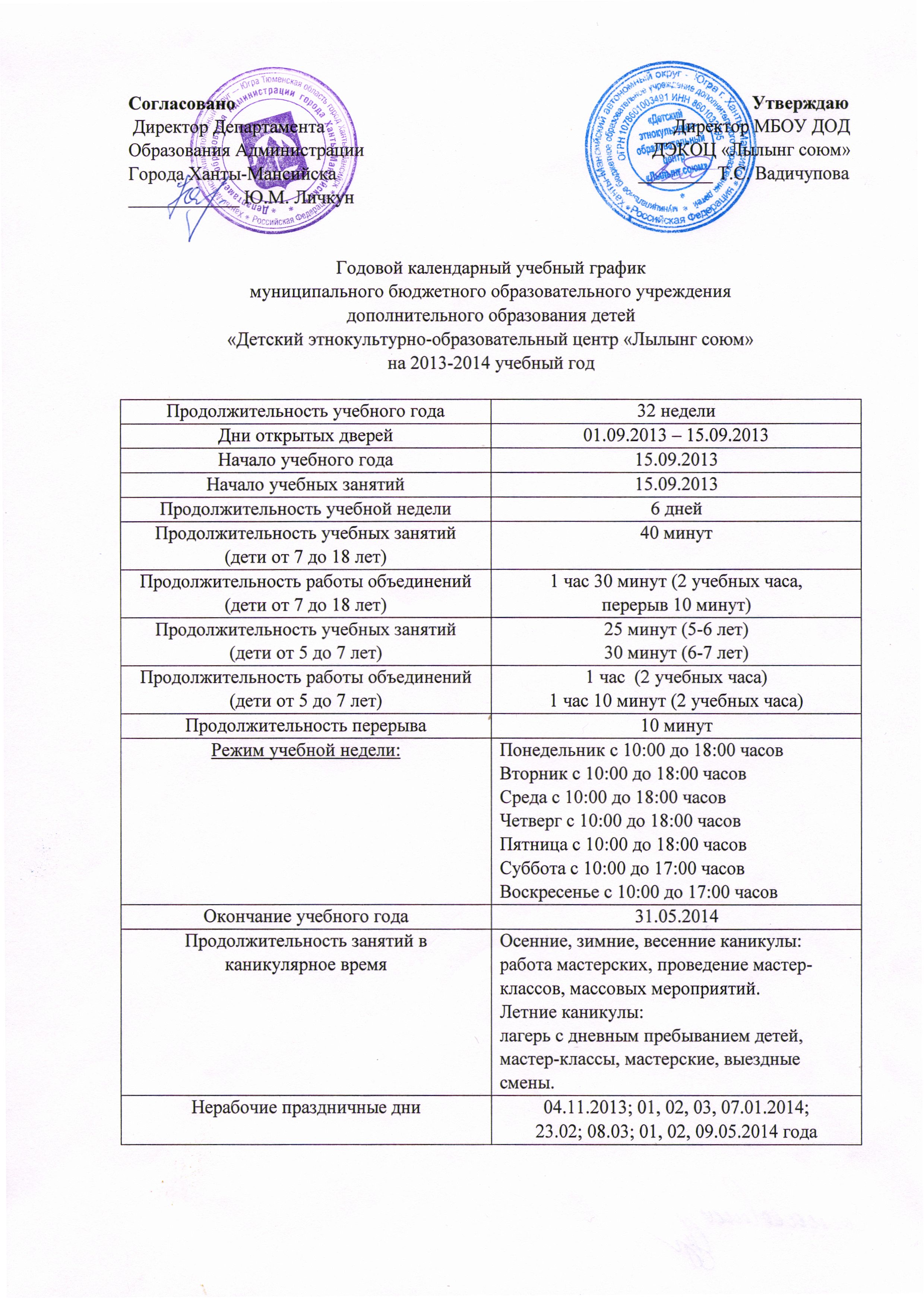 Годовой календарный учебный график на 2013-2014 учебный год